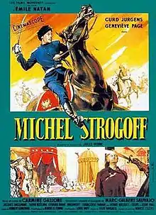 Michel Strogoff is a 1956 historical adventure film directed by Carmine Gallone and starring Curd Jürgens. It is based on 1876 novel of the same title by Jules Verne. Made as a co-production between several European nations, it was shot at the Kosutnjak Studios in Belgrade using CinemaScope.. The film's sets were designed by the art directors Léon Barsacq and Vlastimir Gavrik. Jürgens also appeared in a 1961 follow-up The Triumph of Michael Strogoff.
