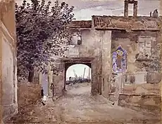 In 1919 Michele Cascella moved to Milan where he shared an apartment with his friend and inspiration, the poet Clemente Rebora. He dedicated himself to engraving and ceramics, later returning to oil and watercolor painting. In 1924 Carlo Carrà, who was a great supporter of the primitivism in Cascella's paintings, gave him good reviews. That same year, three watercolors were exhibited at the Venice Biennale for the first time and one of them, Mattutino, was bought by King Vittorio Emanuele III. Since then, the artist participated in almost all the Venice Biennale exhibitions until 1942. In 1928 he made his first trip to Paris, though he had held several exhibits there already, and he exhibited in Brussels. From then on, Cascella considered Paris his second home. Life there reminded him of certain areas of Italy.