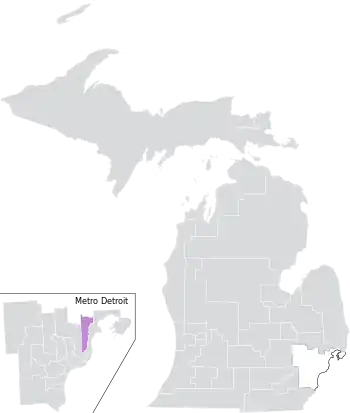 The district was largely located within Michigan's 14th congressional district, also extending into the 9th and 11th districts. It overlapped with the 26th, 27th, 35th, and 37th districts of the Michigan House of Representatives.[8]