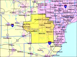 The district includes portions of Detroit and some of its suburbs, and since the 2012 redistricting, has been the only congressional district in Michigan to be contained within a single county.[3] District boundaries were redrawn in 1993, 2003, 2013, and 2023 due to reapportionment following each respective census.