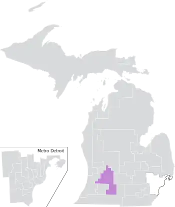The district was largely located within Michigan's 12th congressional district, with a small portion extending into the 7th district. It overlapped with the 52nd, 53rd, 54th, and 55th districts of the Michigan House of Representatives.[8]
