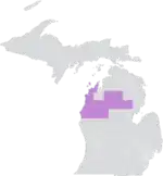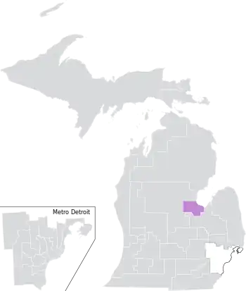 The district overlapped with Michigan's 1st, 2nd, and 4th congressional districts, and with the 97th, 100th, 101st, 102nd, and 103rd districts of the Michigan House of Representatives.[6]