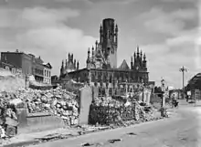 The town hall's interiors burnt down entirely on May 17, 1940 during the bombardments in the Second World War. Like most of the old town center of Middelburg, the town hall suffered the German bombardments. Old paintings and documents were lost, only the exterior remained. A large restorative campaign started, which lasted till late in the 20th century. It was decided to restore the Gothic facades, and to add a new building into the interiors, in a style fitting with the traditional Gothic building. The architects H. van Heeswijk from The Hague and M. J. J. van Beveren supervised this reconstruction.