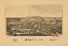 Perspective map of Middleville with list of landmarks published in 1890 by L.R. Burleigh