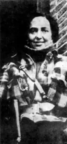 She then gave alphabetization classes and popular education in Madrid, in a hospital run by the Confederación Nacional del Trabajo. In the meantime, she was still taking part in activities led by the Mujeres Libres.[1] On March 28 1939, once Madrid had been defeated by the troops of Franco, she was able to take refuge in the city's French school, thanks to her passport, before leaving Spain for Paris.