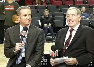 Mike Rice (R) with his longtime television broadcast partner with the Portland Trail Blazers, Mike Barrett.