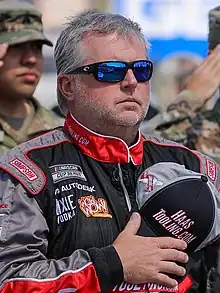 He started his racing career by working in his uncle's racing shop in Ohio, going from working on the street stock cars his uncle owned to being given the opportunity to drive them when he was 15. However, a local rule prohibited him from driving a street stock car until he was 16.[1] He moved up the ladder of racing, from street stocks to late models before going to college and graduating with a degree in diesel technology from the University of Northwestern Ohio in 1992.[3]