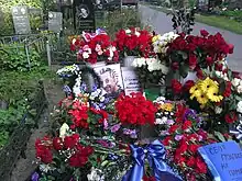 A civil memorial service for Mikhail Gorshenyov took place on Monday, July 22, at the Yubileiny sports complex in St. Petersburg.[4] According to some reports, from 7 to 10 thousand people came to say goodbye to the musician, including many of his colleagues in the shop. The body was cremated, the ashes were planned to be scattered, since Gorshenyov was against any burial rites, however, on August 1, the ashes were buried on the main alley of the Theological cemetery in St. Petersburg.[5]