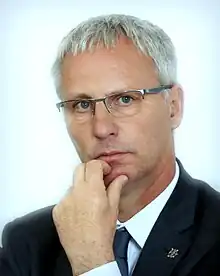 Miklós Soltész (born 23 July 1963)[1] is a Hungarian plant engineer and politician, who served as Secretary of State for Social and Family Affairs in the Second Orbán Government between 2010 and 2014. He is the current Secretary of State for Churches, Minorities and Civil Affairs since 2014 in the Third Orbán Government. He is also Member of Parliament (MP) since 2002, representing the Christian Democratic People's Party (KDNP).[2]