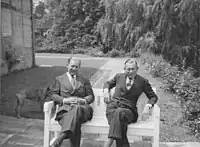 Miles Watson, 2nd Baron Manton (right) with brother R F Watson, Directors of Newmarket Bloodstock Ltd. Company Christmas card portrait circa 1960