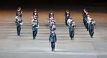 The Bands of the Household Division are the amalgamated five military bands of the Foot Guards regiments in London. It performs during public duties events in the capital, particularly those that involve the British royal family. It consists of the following regimental bands:[13]