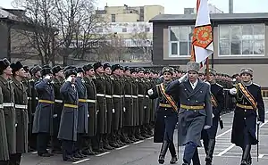 The Russian military education system, inherited from the Soviet Union, trains officer-specialists in narrowly-defined military occupational specialties.[1] Modern Russian military educational institutions conducting commissioning programmes may have different names (academy, institute, higher school), it stems from tradition and has no effect on the content of aforementioned programmes.