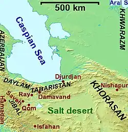 In 314 H (926 CE), at the request of Caliph al-Muqtadir, the Samanid leader Nasr ibn Ahmad ibn Ismail mounted an expedition to dislodge Fatik, the freedman then governing Ray on behalf of Yusuf ibn Ali 'I-Sadj. He captured the city in Djumada II (August–September) and returned to Bukhara a couple of months later, once stability had been assured.[37] In 316 H (928 CE), the Da'i Saiyid Abu Muhammad Hasan ibn Kasim (deposed former ruler of Tabaristan) and Abu Mansur Makan ibn Kaki (former governor of Djurdjan) set out on a campaign of conquest, so in early Sha'ban (late September) Muhammad ibn Sa'luk, the governor appointed to Ray by Nasr ibn Ahmad, effectively invited them to take control of Ray, pleading illness, and retired to Khorasan. The effortless conquerors discovered too late that Asfar ibn Shirawaihi, the man whose rebellion had ended Makan's governorship, had returned from Khorasan and conquered both Djurdjan and Tabaristan. The Da'i tried to depose him, but was defeated, and killed by Asfar's lieutenant Mardawidj ibn Ziyar on 24 Ramadan, 316 H (11 November 928 CE). Asfar then marched his army to Ray and defeated Makan, who withdrew in haste.[38] About 318 H (930 CE), Asfar sent Mardawidj ibn Ziyar to command a force against Muhammad ibn Musafir in Daylam, but instead of fighting they teamed up against Asfar, who fled, but was caught and killed the following year.[39] Makan ibn Kaki prevented Mardawidj from taking over any of Asfar's territories except Ray, but he did gain the service of three of Makan's ablest officers, the Daylamite brothers 'Ali, Hasan and Ahmad ibn Buya.