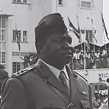 Idi Amin pictured in 1966, shortly after he led an attack on the Kabaka's palace and forced Mutesa II of Buganda into exile.