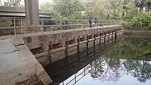 The Mill River tide gates near State St, New Haven, at slack tide.