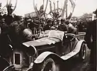 The first race started on 26 March 1927 with seventy-seven starters[4]—all Italian—of which fifty-one reached the finishing post at Brescia by the end of the race.[4] The first Mille Miglia covered 1,618 km, corresponding to just over 1,005 modern miles.[4] Entry was strictly restricted to unmodified production cars, and the entrance fee was set at a nominal 1 lira.[4] The winner, Giuseppe Morandi,[4] completed the course in just under 21 hours 5 minutes, averaging nearly 78 km/h (48 mph) in his 2-litre OM;[4] Brescia based OM swept the top three places.
