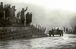 The original route from 1927 to 1930 was run anti-clockwise and headed down to Rome via Piadena, Parma, Modena, Bologna, Florence, Siena and Viterbo, then it headed north up a mountainous route through Perugia and Gubbio, then would join the Adriatic sea route at Porto Recanti, then through Pesaro, Rimini, Forli, Bologna, Ferrara, Padova and Treviso. This variant used to use a route that went into the Dolomite town of Feltre then headed south towards Vicenza, Verona and then finally towards Brescia.[9] The first part of the circuit was changed in 1931 where it bypassed the Piadena route and went directly south towards Cremona, and then went east and rejoined the existing route at Parma; this was used until 1933. The next route, used from 1934 to 1936 saw Feltre and the Dolomites section bypassed and a route that ran near Venice was added, but the rest of the route was the same.[10] From 1937 to 1938, the route was substantially modified. Although the top half remained more or less the same the bottom half was rerouted at Florence to run west towards Lucca and Pisa, and then ran along the Tyrrehennian West Coast down through Livorno, Grosseto and Vetralla before reaching Rome. The circuit then went up and cut through the mountainous range, bypassing Perugia right up to Pesaro, and joining the existing route. This was the last of the pre-WWII Mille Miglia circuits that ran through Bologna twice.[11] The 1940 event was called the "Grand Prix of Brescia" and was run on a very fast 100 km (62 mi) course in northern Italy, that went from Brescia, went west at the village of Le Grazie and then went north from Cremona back to Brescia.