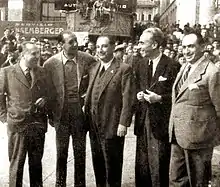 Some of the founders posing together in Brescia, here pictured in the 1940s. From left to right: Giulio Binda, Aymo Maggi, Filippo Tassara, Giovanni Canestrini and Renzo Castagneto.