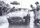 The Italians continued to dominate their race after the war, now again on a single big lap through Italy. Mercedes made another good effort in 1952 with the underpowered Mercedes-Benz 300 SL Gullwing, scoring second with the German crew Karl Kling/Hans Klenk that later in the year would win the Carrera Panamericana. Caracciola, in a comeback attempt, was fourth.