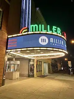 The Miller Theater is a former movie theater and vaudeville house in Augusta, Georgia. The Miller was built by architect Roy A. Benjamin utilizing the Arte Moderne style of architecture and was owned by Frank Miller. Due to an economic downturn in the 1980s in downtown Augusta, the theater was forced to close. It sat dormant until 2005 when it was purchased by local Augusta businessman and entrepreneur Peter S. Knox IV. The first action taken after the purchase of the theater was to repair the roof to stop further damage to the structure.