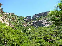 The Milona Gorge is a gorge, situated near the village of Agios Ioannis, in the municipally of Ierapetra in Crete. There is a 10- to 15-minute drive from the town of Ierapetra to the gorge. It has a large waterfall at the end of the walking path. The walking path is only a 20-minute walk from the road, and it is quite easy to follow. At the end of the path, you will find the 40-metre height fall of Milona. The best season to cross the path is in spring, since the waterfall will have plenty water, while in summer, although nice as well it can be much drier.