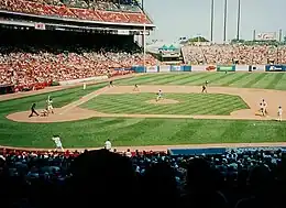 The Brewers have retired five uniform numbers in honor of former players and team personnel.[29] This ensures that the number will be associated with one person of particular importance to the team. Additionally, the number 42 has been retired throughout professional baseball in honor of Jackie Robinson.[30] Though not retired, the number 17 has not been issued since Jim Gantner's retirement in 1992.[31] Gantner, however, later wore the number from 1996 to 1997 when he returned as the Brewers' first base coach.