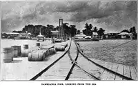 Not long after, a series of narrow-gauge railroads were opened by the American government in Mindanao. These short lines were constructed to transport supplies and United States Army personnel. A line was opened in Camp Keithley in what is now Marawi where trains carried war materiel on flatcars.[4] A 2 ft (610 mm) gauge short line was also opened in Jolo, Sulu.