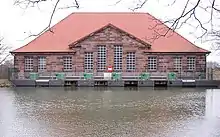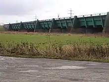 The Minden Aqueduct (German: Wasserstraßenkreuz Minden) is an aqueduct near Minden, North Rhine-Westphalia, Germany. It actually consists of two parallel water bridges, that lead the Mittelland Canal over the Weser. The older of the two bridges is no longer used for shipping. After the Magdeburg Water Bridge, it is the second biggest aqueduct in Europe.