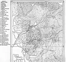 According to a 1904 dictionary of U.S. statutory language, "a mining district is a section of country usually designated by name and described or understood as being confined in certain boundaries, in which gold or silver or both are found in paying quantities, and which is worked therefor, under rules and regulations prescribed by the miners."[1] Per the U.S. Bureau of Mines, mining districts were initially organized "in the absence of all other authority," and there is no limit to the territorial extent which may be contained with any given district. Further, the bounds of a mining district can be readily changed "if vested rights are not thereby interfered with."[2] A 1935 mining report complained of "considerable difficulty" in determining "just what should constitute a mining district" for the purposes of the report, noting extremely wide variation in size and constantly changing names applied to associated or seemingly overlapping areas. The report concluded that an ideal mining district would be of moderate size, clearly defined, and contain geographically or geologically related ores. However in practice, local, historical and geological definitions of a mining district vary widely and may conflict.[3] An 1897 U.S. government report published during the Klondike Gold Rush differences noted differences in the definition American and Canadian mining districts: Americans established separate districts along every creek, whereas Canadians defined a "locality" as being a whole river and its affluents.[4]