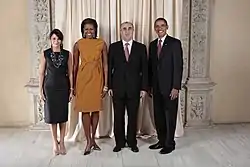 Minister of Foreign Affairs Elmar Mammadyarov and his spouse with President Barack Obama and First Lady Michelle Obama
