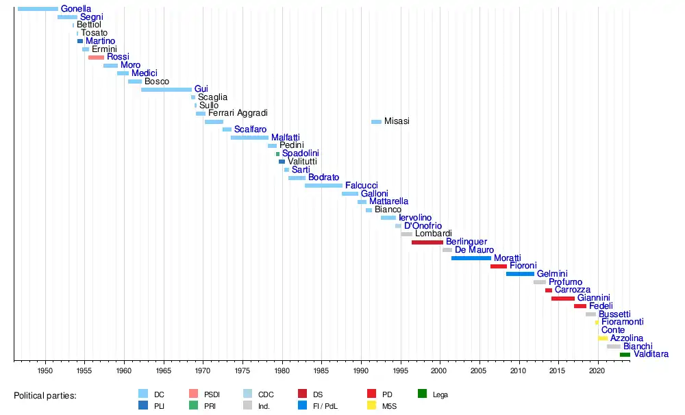 Giuseppe ValditaraPatrizio BianchiLucia AzzolinaGiuseppe ConteLorenzo FioramontiMarco BussettiValeria FedeliStefania GianniniMaria Chiara CarrozzaFrancesco ProfumoMariastella GelminiGiuseppe FioroniLetizia MorattiTullio De MauroLuigi BerlinguerFrancesco D'OnofrioRosa Russo IervolinoSergio MattarellaGiovanni GalloniFranca FalcucciGuido BodratoAdolfo SartiGiovanni SpadoliniFranco Maria MalfattiOscar Luigi ScalfaroLuigi GuiGiuseppe MediciAldo MoroPaolo Rossi (politician)Gaetano MartinoAntonio SegniGuido Gonella