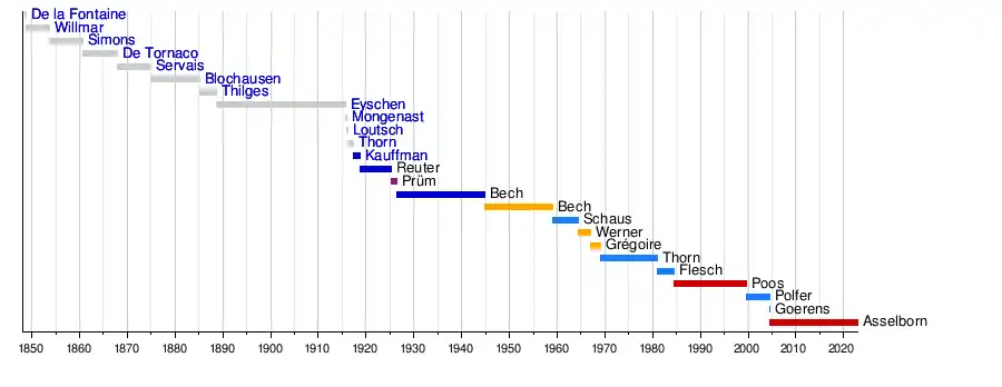 Édouard Thilges | None | 20 February 1885 | 22 September 1888 | Himself | ||