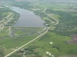 Minnedosa Lake is a man-made lake in the Canadian province of Manitoba near Minnedosa, Manitoba. It was created between 1910 and 1912 to serve as a reservoir for a hydro-electric dam. Today it is a popular recreation site, for both boating and swimming. The lake is considered one of the best sites for competitive rowing in Canada and was the venue for the 1999 Pan American Games rowing events. The lake is fed by the Little Saskatchewan River.