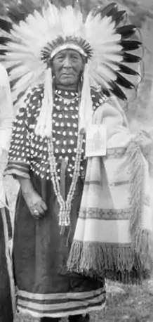 Minnie Hollow Wood (c.1856  1930s) was a Lakota woman who earned the right to wear a war bonnet because of her valor in combat against the U.S. Cavalry at the Battle of Little Big Horn.[1][2][3]:4:37 At one time, she was the only woman in her tribe entitled to wear a war bonnet.[4]