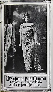 Minnie Priest Dunton (February 29, 1864 – July 13, 1921) was an American suffragist and Idaho State Librarian.[1] She was an early advocate of women's rights in Idaho, and she served as an Idaho State Librarian from 1907 to 1915. She worked with other women to implement the 19th Amendment in Idaho.[2] She became the first woman to be appointed as the State Librarian in Idaho.[1]