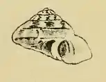 The height of the shell attains 3 mm, its diameter 5 mm. The white, solid, deeply umbilicated shell has a depressed shape. It is slightly transversely furrowed. The shell contains four whorls, with the last one rapidly increasing in size. It is distinguished by regular longitudinal flame markings becoming small, paler, and more zigzagged, below the somewhat angled periphery, and all uniting round the umbilicus in a red band. The aperture is ovate-triangular. The lip is simple. The columellar margin is thickened.[2]