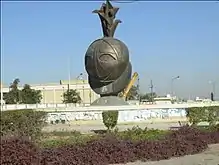 - Description: Represents two faces of falconers in a split sphere with eagles sitting on top. Almost certainly influenced by the split sphere design of the Martyr's Monument, also in Baghdad, by Ismail Fatah Al Turk, the Eagle Monument symbolises the Iraqi pilots who fought in the war as well as Iraq's soaring ambition from its ancient past to the present day. It is erected at the location where an Iraqi pilot landed after have been shot down in 1963. The monument was scheduled for destruction in the post-2003 period due to its close association with the Ba'ath Party, however, this proposal met with substantial public resistance and has been saved from demolition, at least, for the time being.[8]