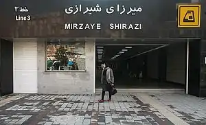 Mirzaye Shirazi Metro Station is a station in line 3 of the Tehran Metro.[1][2] It is located on Shahid Behesthi Street's intersection with Mirza-ye Shirazi Street in Central Tehran's District 6. The station was opened on February 10, 2016.[3]