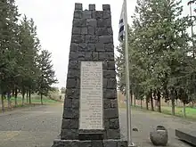Some of the destroyed houses in the moshava are visible today. They form part of a memorial on the location.