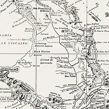 Detail of a map of central Baja California peninsula showing Santa Gertrudis and nearby arroyo watercourses