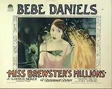 Miss Brewster's Millions is a 1926 American silent comedy film produced by Famous Players–Lasky and distributed by Paramount Pictures. Clarence G. Badger directed and the ever-popular Bebe Daniels starred.[1][2][3] It was based on the 1902 novel by George Barr McCutcheon and a 1906 play adaptation of the same name by Winchell Smith and Byron Ongley, which had been filmed before in 1921 with Roscoe Arbuckle.[4]