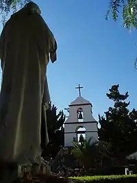 Pala is unique among all of the Franciscan missions in that it boasts the only completely freestanding campanile, or "bell tower," in all of Alta California. By 1820, some 1,300 baptisms had been performed at the outpost.[6] Folk tales about the mission include mention of a prickly pear cactus, which became a local symbol of Christian victory, that grew up at the foot of the cross.[7]