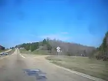 MS 172 begins at an intersection with US 72 near Burnsville in the western part of Tishomingo County.[2] The route heads to the north of US 72 as a two-lane undivided road before soon turning east-southeast at an intersection with County Road 982. From this point, the road heads through woodland with some farm fields and homes.[3] Several miles later, the route turns more east and the surroundings become more developed as it becomes Quitman Street and reaches an intersection with MS 25 on the western edge of Iuka.[2][3]