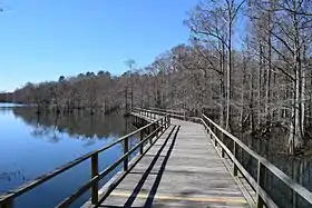 - ↑ Mississippi's first nine state parks were built by the CCC. "By July, 1935, a total of nine new parks were under construction. These nine were Leroy Percy in Washington County; Tombigbee in Lee County; Clarkco in Clarke County; Legion in Winston County; Tishomingo in Tishomingo County; Holmes County; Roosevelt in Scott County; Spring Lake (later re-named Wall Doxey) in Marshall County; and Percy Quin in Pike County." "National Register of Historic Places Multiple Property Documentation Form". U.S. Department of the Interior - National Park Service. August 15, 1996.