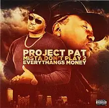 Mista Don't Play 2 Everythangs Money is the eighth studio album by American rapper Project Pat from Memphis, Tennessee. It was released on April 14, 2015[1] via Entertainment One Music. It served as a sequel to his sophomore full-length Mista Don't Play: Everythangs Workin, released in 2001.[2][3] Production was handled primarily by Pat's younger brother Juicy J, alone with Lil Awree, Joe Simpson, Crazy Mike, J Dizzle on the Beat, Mike Will Made It, K.E. on the Track and Deezy. It features guest appearances from Bankroll Fresh, Doe B, Nasty Mane, Ty Dolla $ign, Wale, Wiz Khalifa and Juicy J. The album peaked at No. 43 on the Top R&B/Hip-Hop Albums chart in the United States, spawning a single "Twerk It".