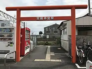 Miyazaki-Jingū Station (宮崎神宮駅, Miyazaki-Jingū-eki) is a passenger railway station located in Miyazaki City, Miyazaki Prefecture, Japan. It is operated by JR Kyushu and is on the Nippō Main Line.[1][2]