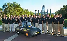 The team, located on the campus of the University of Missouri and run entirely by students, seeks to promote awareness of alternative fuels, develop technology, and allow members to gain practical experience through constructing a hydrogen vehicle. Advised by Professor Richard Whelove of the Mechanical and Aerospace Engineering Department, as well as Richard Wallace of the Electrical Engineering Department, the team was formerly known as the Mizzou Solar Car Team. The team switched over to hydrogen after 6 generations of solar cars. The team remains advised by Richard Whelove, alongside Michael Devaney of the Electrical Engineering Department.[2] The team's first venture into hydrogen powered vehicles was with Tigergen I which ran on two 1.2 kW Ballard fuel cells and exhibitioned in the North American Solar Challenge as a demonstration vehicle.[3] The team's second vehicle, Tigergen II, operated on a single 1.2 kW Ballard fuel cell and competed in the Urban Concept category of the Shell Eco Marathon, winning first place in the hydrogen category and fourth place overall in 2011. The team's current vehicle, Tigergen III, operates on two 1 kW Horizon fuel cells and competed Shell Eco Marathon Americas competition, placing third in the hydrogen UrbanConcept category.