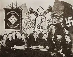 The Mladorossi organization had a fascist influence as demonstrated by its doctrine and as visible through its use of the Roman salute popularized by the Italian fascist dictator Benito Mussolini to salute its leader (renounced when Hitler launched Operation Barbarossa). Alexander Kazembek saw from fascism the combination of traditionalism, ultra-nationalism, anti-communism, as well as the desire to lean on the masses hence the imitation of the Italian fascists.[2] Kazembek also was in some sort of contact with Mussolini.[3]