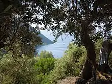 The Molos Gulf (Greek: Κόλπος Μώλου - Kolpos Molou) is a bay of the Ionian Sea on the east coast of the island Ithaca, western Greece. It penetrates deep into the island and cuts it nearly into two parts, that are only connected by the 620 m wide isthmus of Aetos.