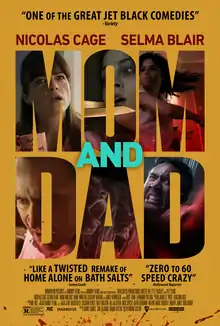 Mom and Dad is a 2017 black comedy horror film written and directed by Brian Taylor. Starring Nicolas Cage and Selma Blair, the film premiered at the 2017 Toronto International Film Festival, and was theatrically released on January 19, 2018, by Momentum Pictures. A joint British and American production, the film underperformed at the box office but received generally positive reviews from critics.
